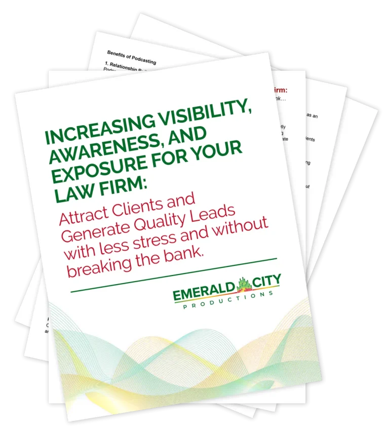 Our podcast-based strategy simplifies your marketing, saving time and costs while positioning you as an expert. Let us handle all of your digital marketing (content, social, video, SEO, ads, website, CRM, and more) so you and your team can focus on what you do best—practicing law.